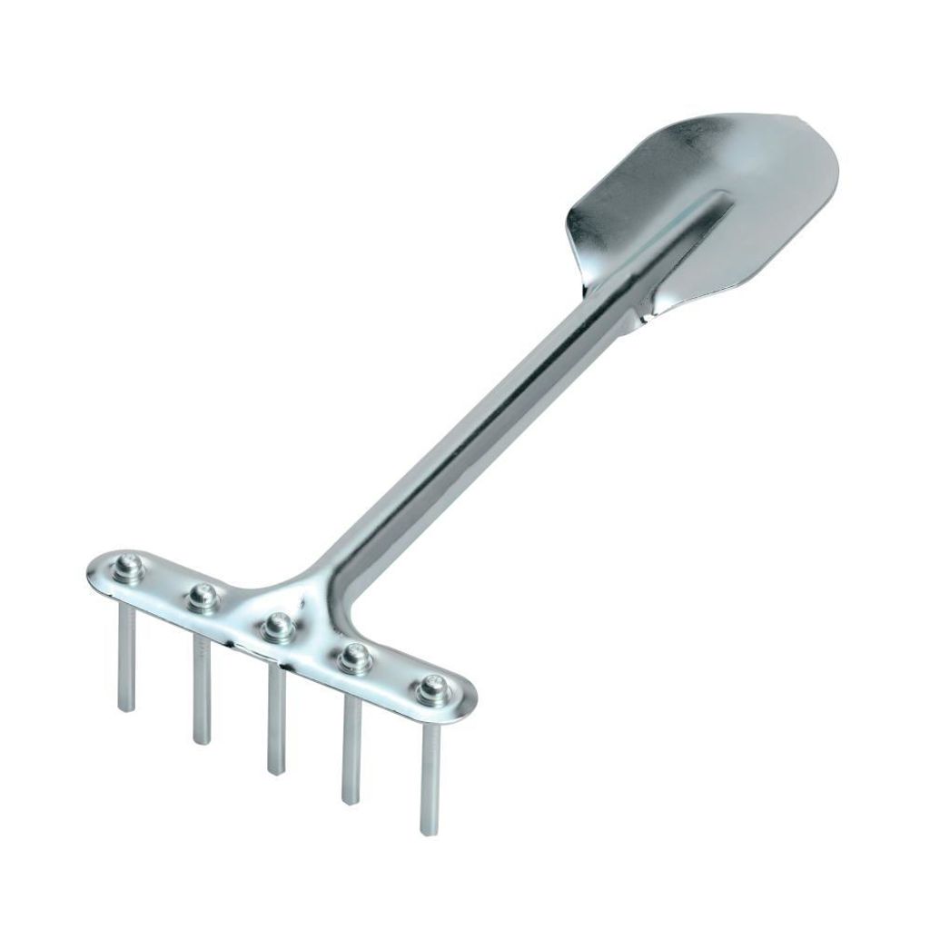 Kombiredskap i kraftig modell med spade och kratta i samma.