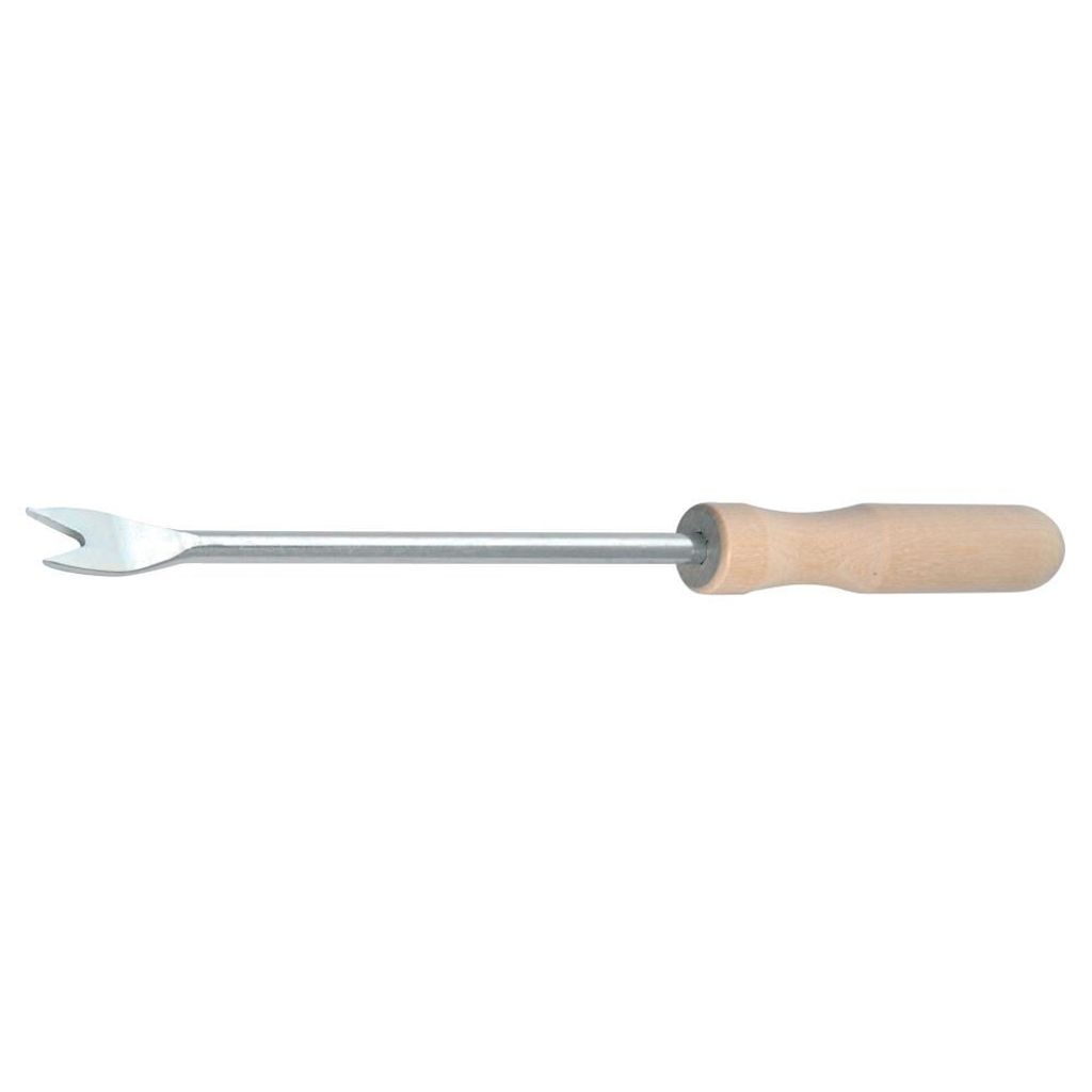 Maskrossticka av zink med trähandtag.