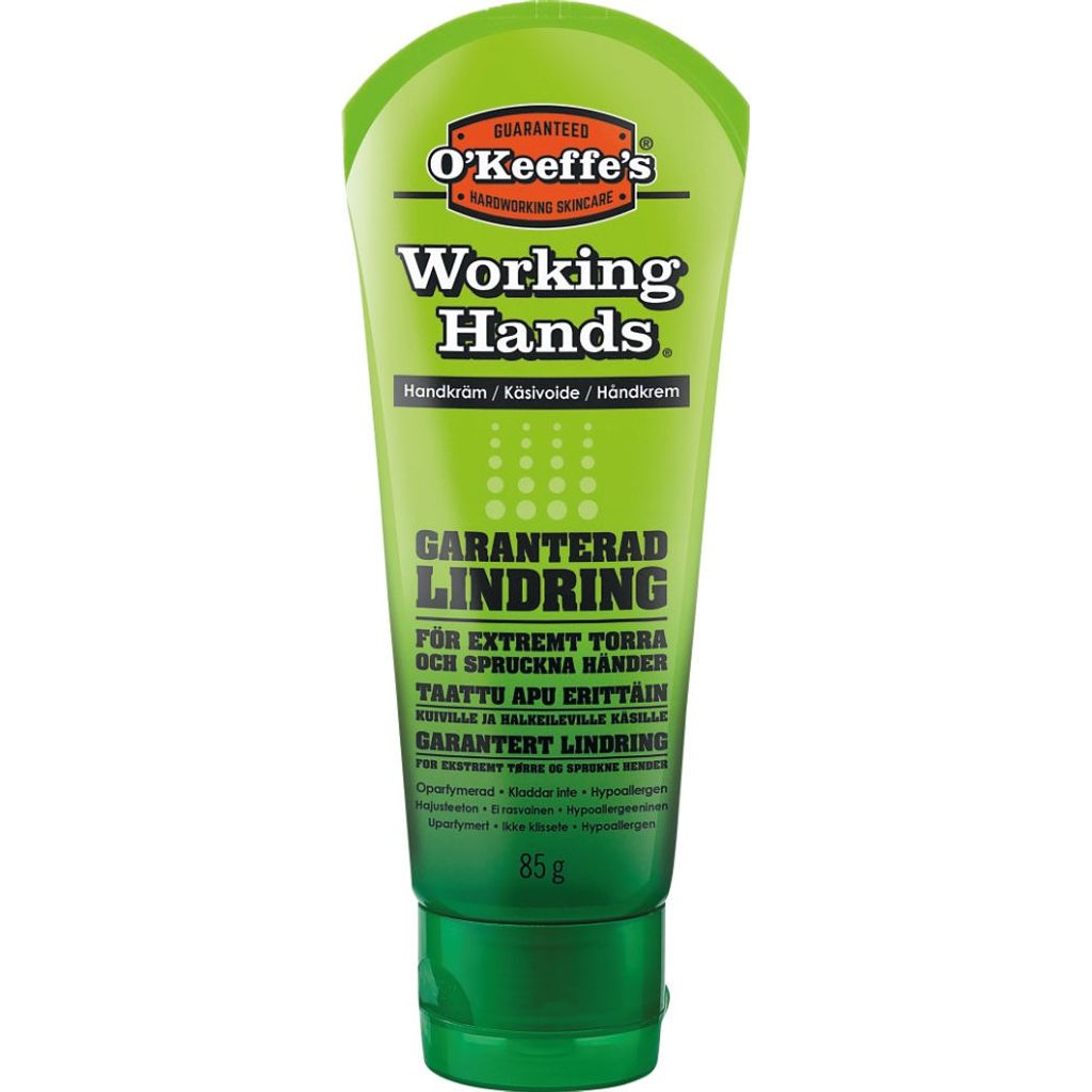 O'Keeffe's Working Hands är handkrämen för dig som arbetar mycket med händerna. Mjukar effektivt upp torra händer, stimulerar hudens naturliga reparationsprocess genom återfuktning, justerar pH-balansen och hjälper huden att bibehålla fukten. Svåra sprickor och extremt torra partier repareras och lindras effektivt med Working Hands.