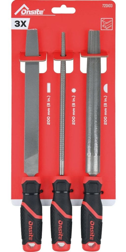 Onsite Filsets är en oumbärlig del av verktygssatsen för både hantverkare och DIY-entusiaster. Detta mångsidiga set med tre filar är speciellt utformat för att täcka ett brett spektrum av slip- och formningsbehov. Oavsett om det gäller att forma metall, trä eller plast, erbjuder detta set de nödvändiga verktygen för uppgiften.