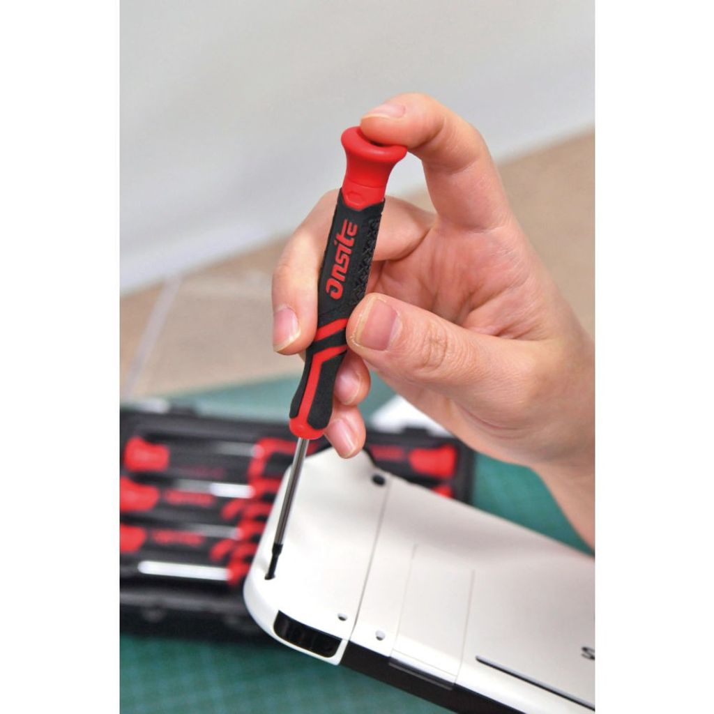 Onsite Instrumentmejlselsats erbjuder en mångsidig samling av skruvmejslar för precisionstillämpningar, perfekt organiserade i en praktisk förvaringsask.