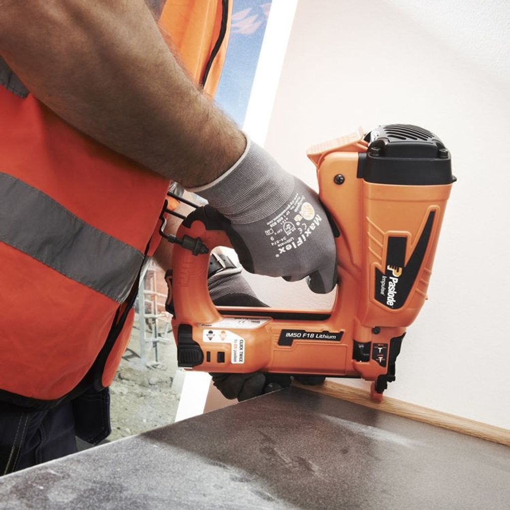 Paslode IM50 F18 är en gasdriven dyckertpistol som är idealisk för högpresterande snickeriarbeten och installationer. Med justerbar spikdjupskontroll och en lätt och ergonomisk design är den lätt att använda under längre tidsperioder. Pistolen drivs av en gaspatron och ett snabbladdat lithiumbatteri. Vikten är 2,10 kg och dyckertlängden är mellan 16-50 mm.