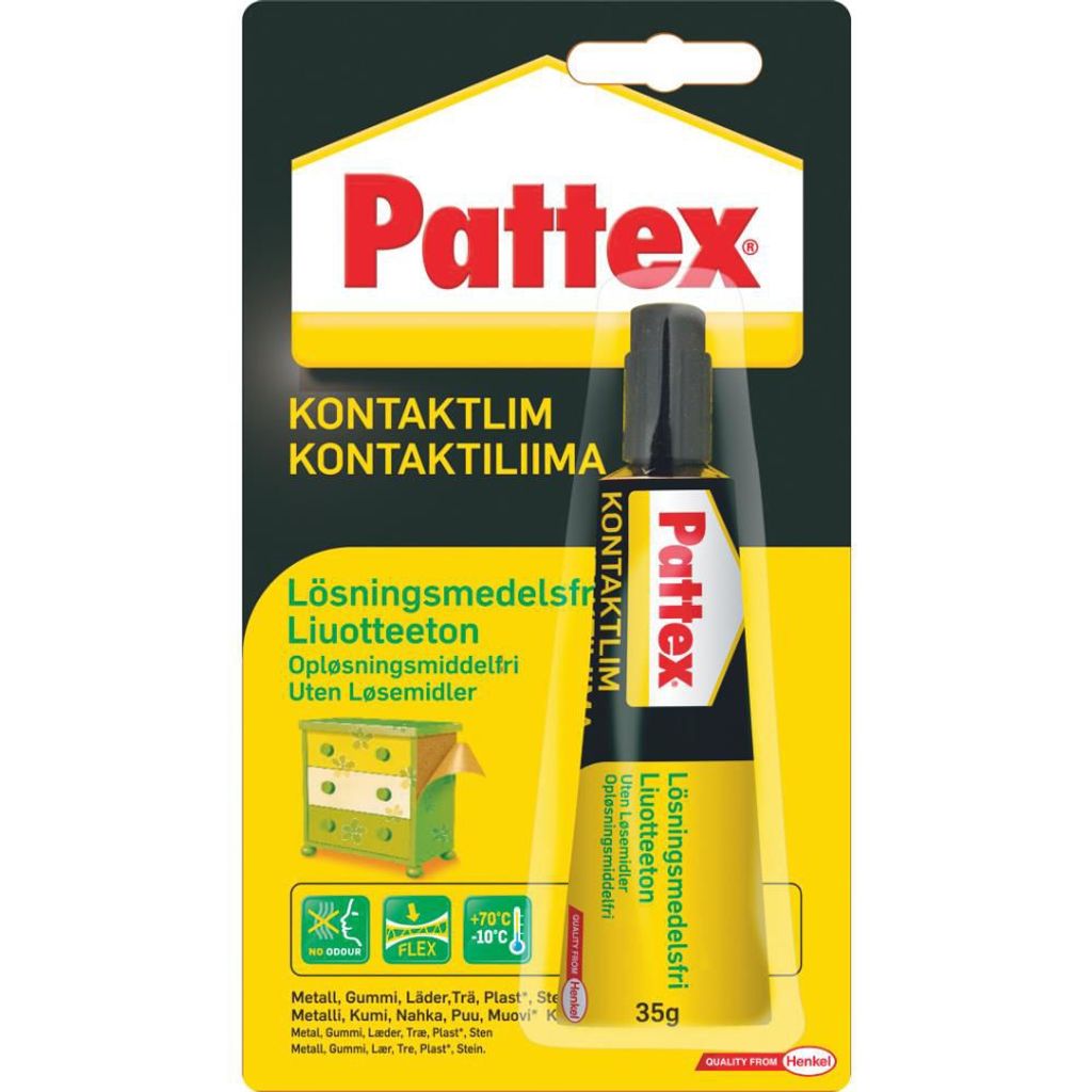 Pattex kontaktlim lösningsmedelfri är ett kontaktlim som kan användas av alla i hemmet. Limmar de flesta material såsom såsom trä, gummi, läder, kork, hård PVC och trä-och plastlaminat.