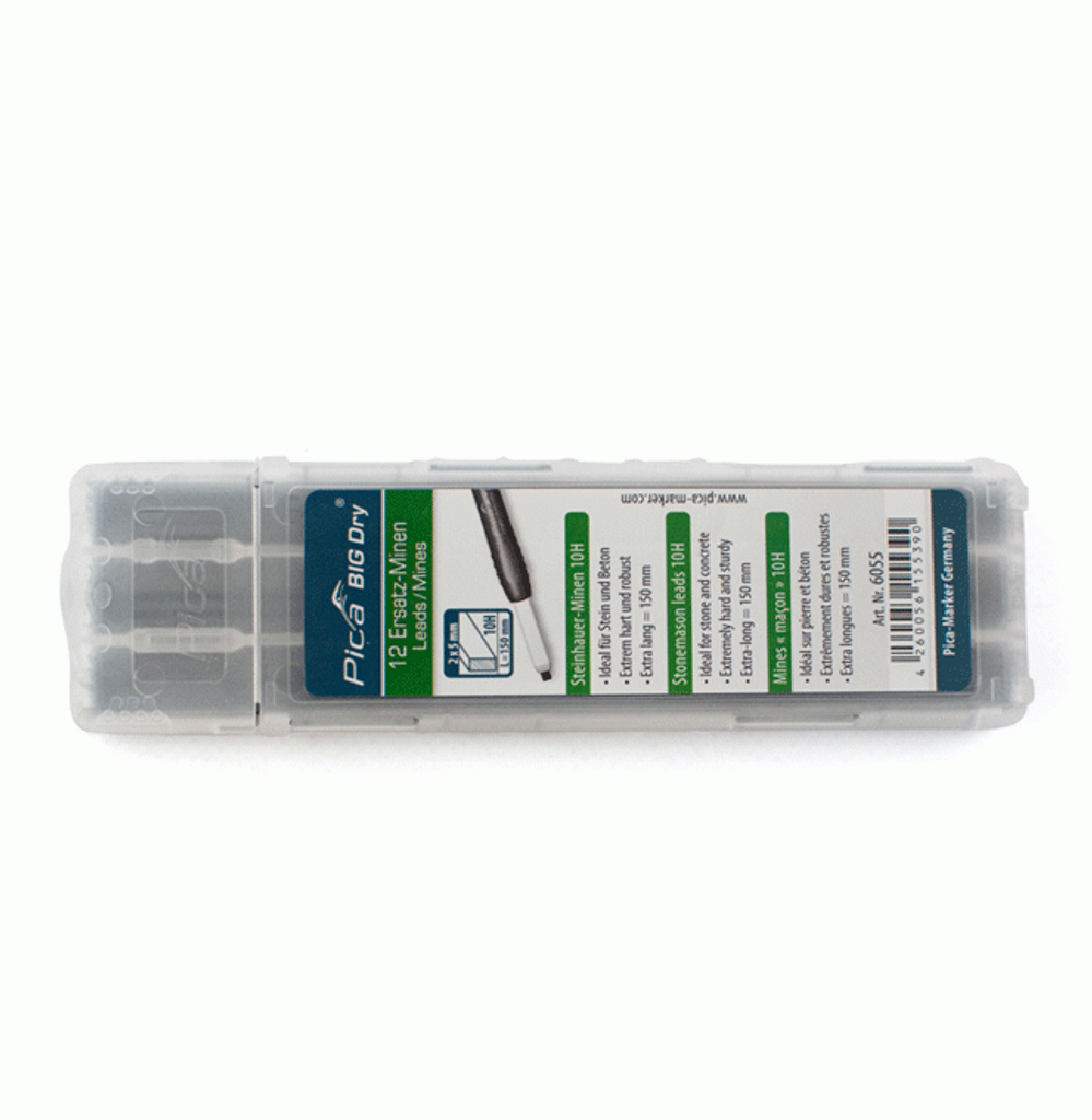 Pica Dry förpackning med 12 st Stonemasonstift. De vattenlösliga stiften är extra hårda och därmed idealiska att använda på sten och betong.