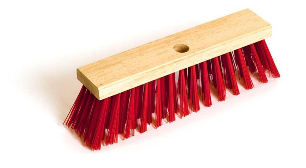 Trärygg. Borst av propénplast. Styv borst lämplig för sopning av medelgrov och grov smuts på de flesta underlag, både våta och torra ytor. Propénplast har en låg vattenupptagningsförmåga. Passar träskaft konat till Ø 22 mm.