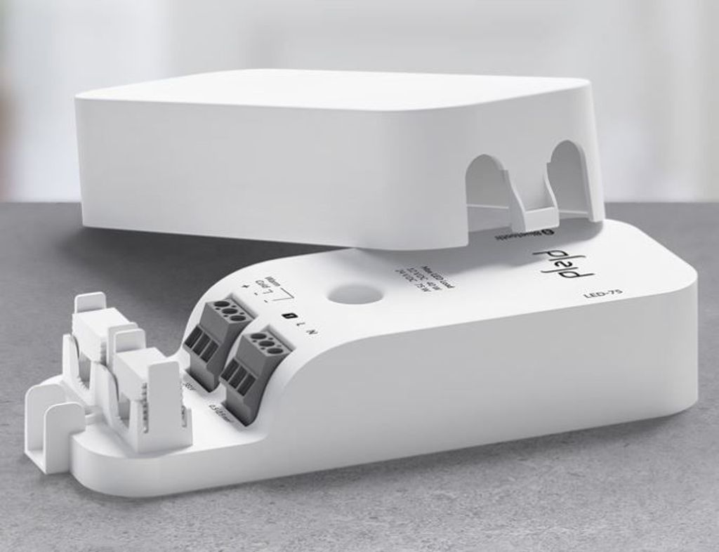 LED-driver 75 W för användning med 12/24 V DC tunable white eller enfärgade LED-strips för upp till 75 W belastning. Produkten har en styringång och kan även styras trådlöst via appen eller genom andra produkter från Plejd. Den kan också styras automatiskt med inbyggda tidsfunktioner som astro- och veckour. Kan monteras på vägg med skruv (ej inkluderat).