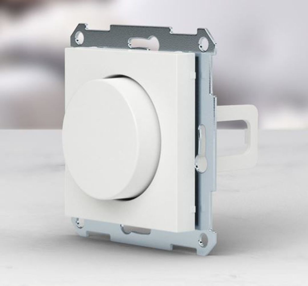 Vridadapter för Schneider Exxact ram snäpps ihop med valfri dosprodukt ur Plejds sortiment och fungerar då som en klassisk vriddimmer. Inställningar görs genom appen Plejd (Bluetooth®) och dosprodukten bibehåller samma funktioner som tidigare, såsom knappingångar, tidsfunktioner etc. En dosprodukt med vridadapter kan synkroniseras med alla typer av styrning. Det betyder att du fritt kan välja mellan en eller flera vriddimrar eller tryckknappar för styrning av samma armatur eller grupp av trådlöst synkroniserade armaturer. Dubbelklick på ratten kan även användas för scenstyrning. Vridadapter, klo-kit för montering, samt centrumplattor som passar Schneider Exxact medföljer (ram medföljer ej).