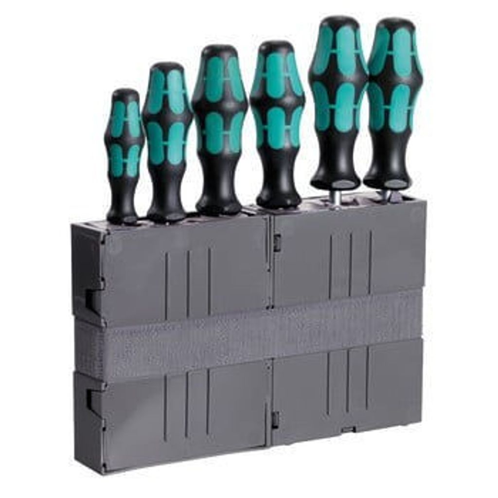 Smart hållare för säker verktygsförvaring. Hållaren har en kärna av flexibelt gummi som gör det möjligt att förvara verktyg i olika storlek sida vid sida.