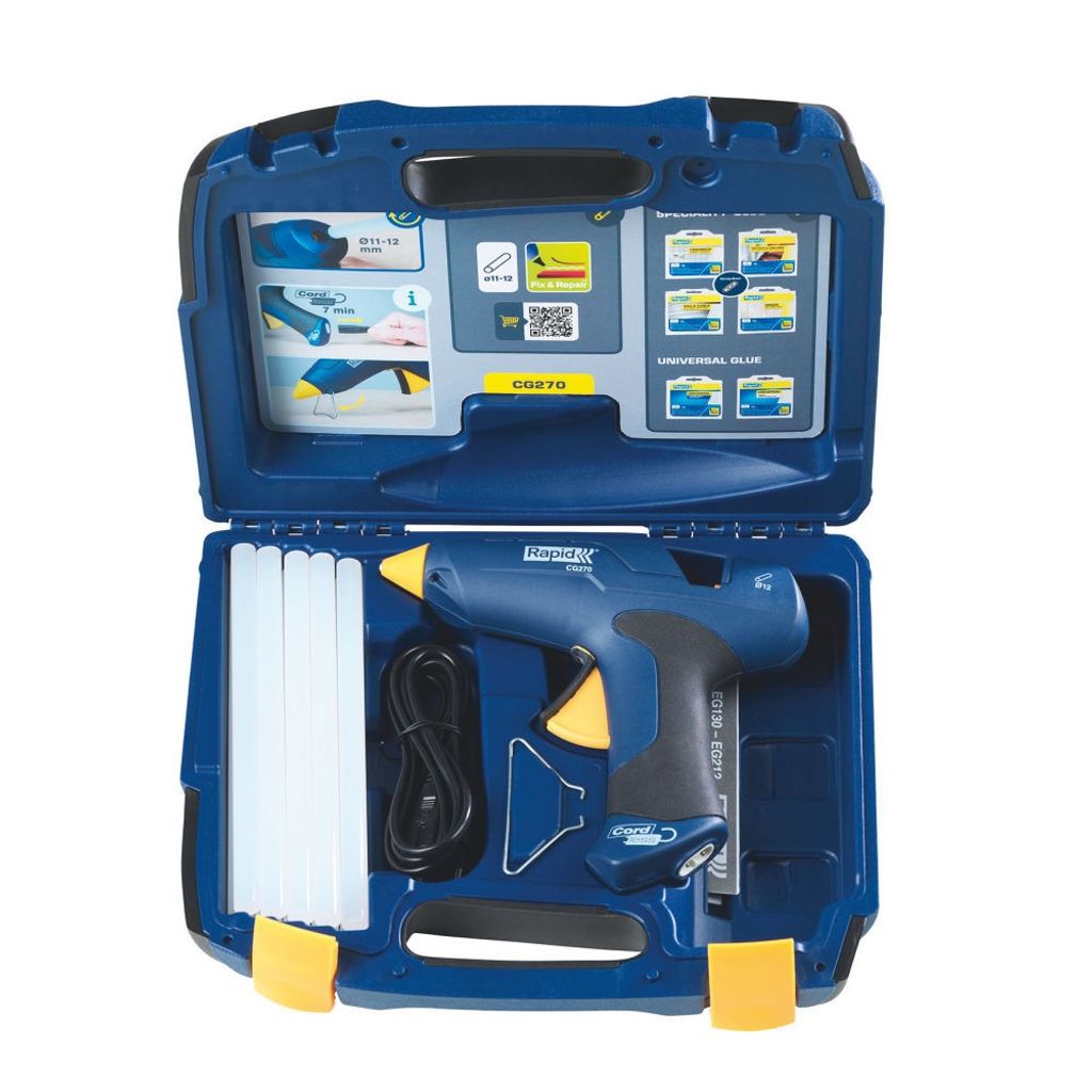 Rapid CG270 Kit V21 är en högkvalitativ och mångsidig limpistol som erbjuder hög prestanda och användarvänlighet för både professionellt bruk och hobbyprojekt. Med sin urdragbara sladd kan den användas sladdlöst i upp till 7 minuter, vilket ger större rörelsefrihet och flexibilitet vid arbete.