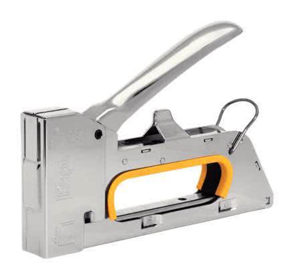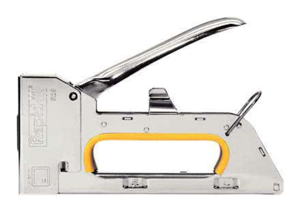 Rapid R23 Häftpistol i metall. Rekylfri. Med hög slagkraft. Handtaget kan - utan att tomskott avlossas - låsas i sitt nedre läge. Avsedd för bl.a. möbeltapetsering, fastsättning av dekorationsmaterial, affischering etc.
