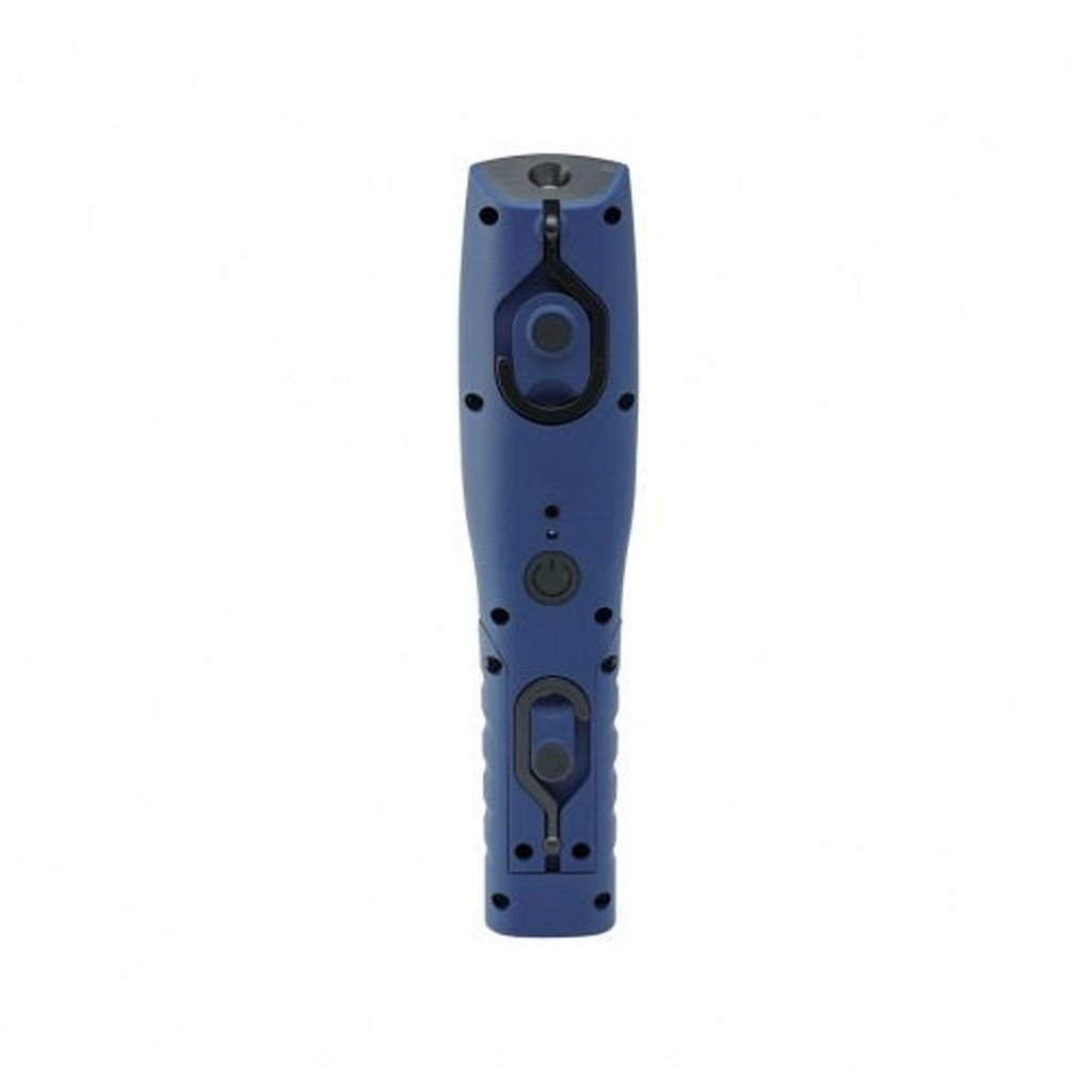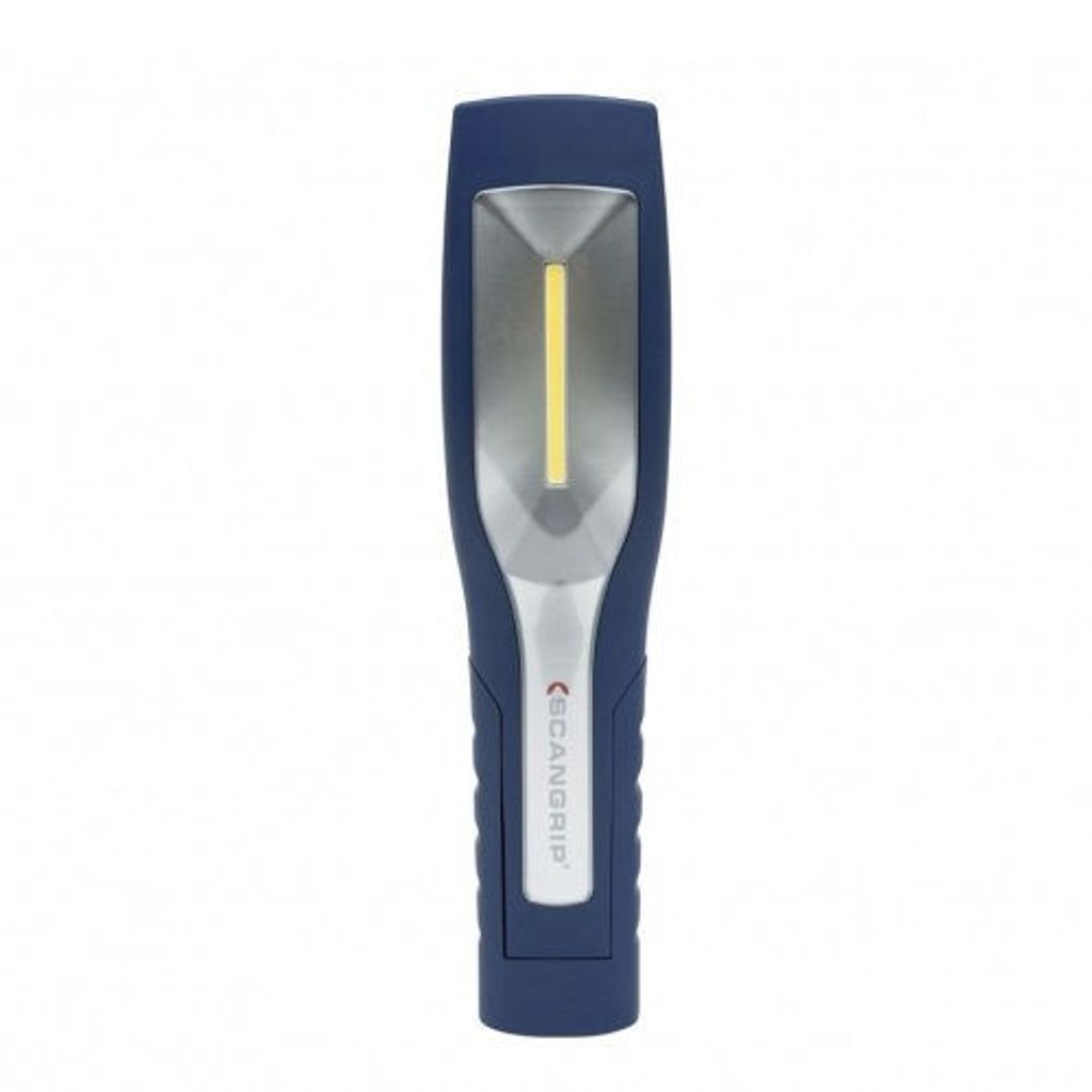 Scangrip MAG3 är en extra kraftfull laddbar arbets och ficklampa utrustad med 3 st kraftiga magneter och den senaste COB LED tekniken med både starkt naturligt arbetsljus och toppljus. Tillverkad av slagtåligt kompositmaterial belagd med en mjuk yta av blått gummi som ger ett varmt, säkert och skönt grepp även med oljiga händer och i väta. Gummerad tryckknapp som även har blinkfunktion. IP 20 klassad och godkänd. Flexibelt lamphuvud juster och ställbar i 180° vinkel med fasta klicklägen däremellan. Utrustad med 1 st extra stor och kraftig magnet i foten och 2 st mindre på ryggen tillsammans med 2 st infäll och justerbara krokar åt var sitt håll. COB LED i arbetsljuset och 1 W High Power LED diod i toppljuset.