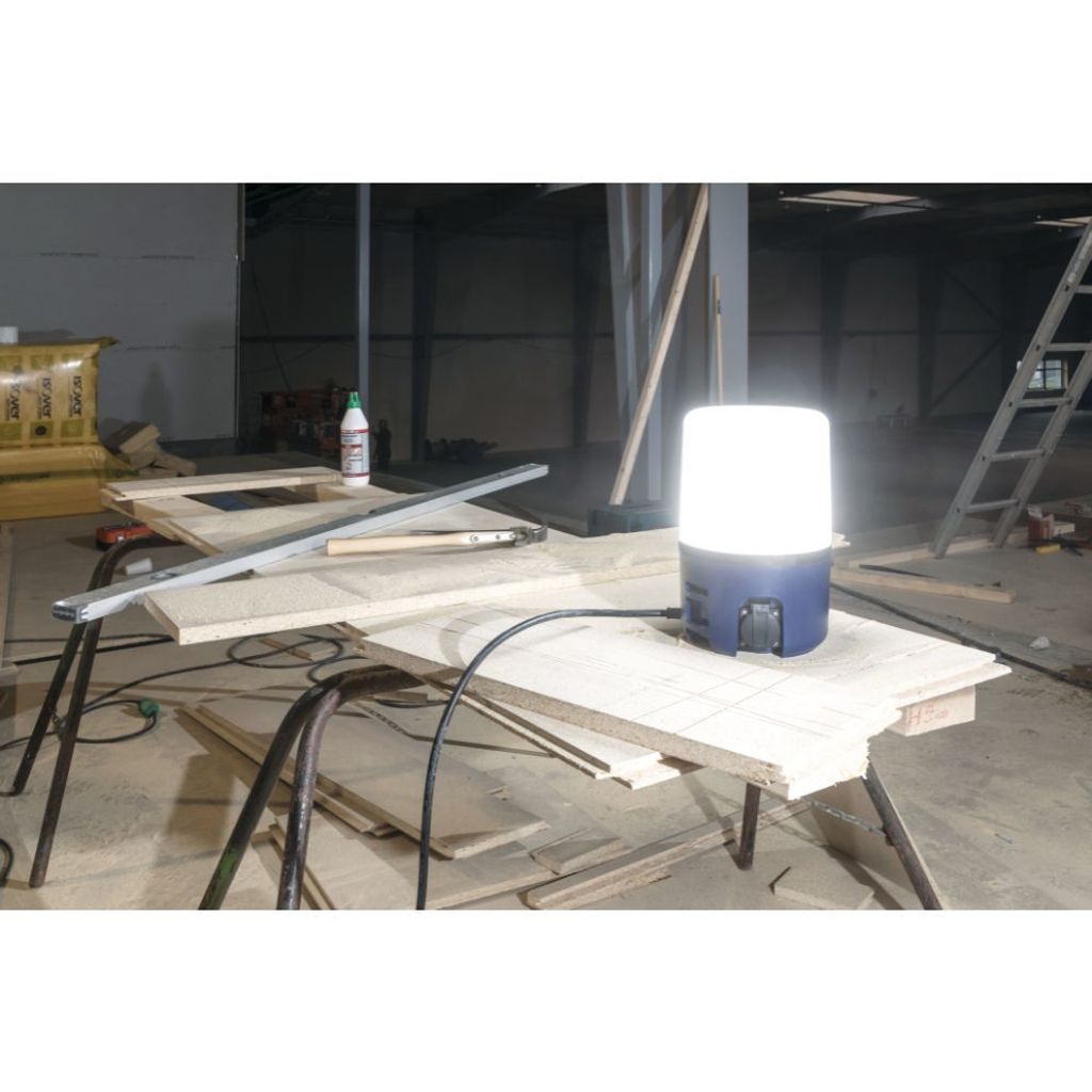 Scangrip Area Lite CO är en 360° rundstrålande arbetsbelysning. Ljuseffekten har ökats från 4000 lumen till 6000 lumen. Area Lite Co är extremt robust och hållbar som tål att tappas. Inkl eluttag - flera lampor kan seriekopplas, uttaget kan användas som strömkälla för olika verktyg och maskiner. Kan placeras direkt på arbetsbänk eller hängas i den stadiga kroken. Lampan kan också monteras direkt på stativet.