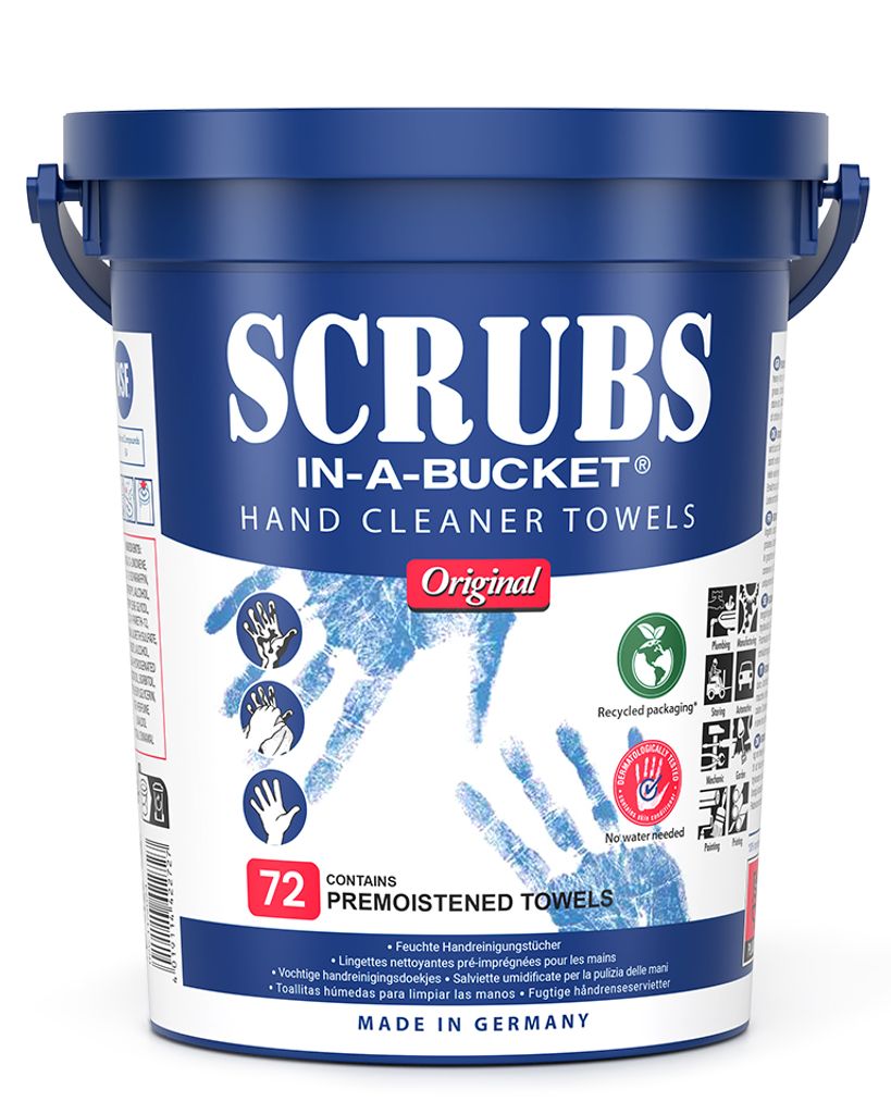 Scrubs Våtservett är ett unikt, patenterat rengöringssystem utformat för att underlätta rengöring på arbetsplatsen eller på språng. Den är en universalduk av högsta kvalitet, lämplig för en mängd olika rengöringsuppgifter, inklusive att ta bort svår smuts som olja, fett, tjära, asfalt, trycksvärta, kåda, färg, lim, fogmassa, plast, vax och silikon.