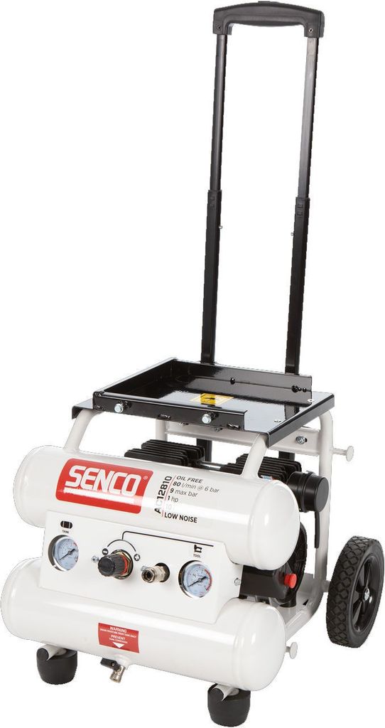 Senco AC12810 är en kompakt, mobil och oljefri low noise kompressor, med en låg ljudnivå (endast 65 dB!) Du kan sätta kompressorn direkt vid arbetsstationen utan att användaren störs av den.