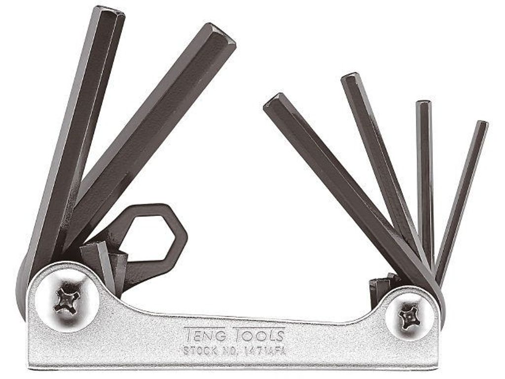 Teng Tools Sats med sexkantnycklar i tumstorlekar. Av kromvanadinstål. Nycklarna är infällbara i det kromaterade handtaget.