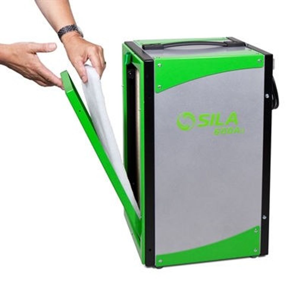 Sila 600A3 har en kapacitet på 600 m3/h och klarar arbetsytor upp till 23 m2. För att ta lite plats är den byggd på höjden. Två utblås gör att ett undertryck skapas genom att luften både kan ledas utanför och cirkulera i arbetsområdet. Filtervakt som indikerar filterbyte. Grovfiltergaller för snabbare filterbyte och skydd av HEPA-filtret. Drifttidsmätare. Luftrenarens utformning gör att den är staplingsbar. Släta sidor för enkel rengöring.