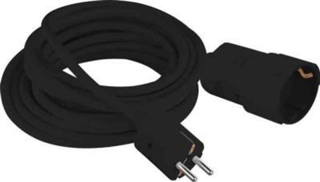 Jordad förlängningskabel för inomhusbruk. Både stickpropp och uttag är jordade.