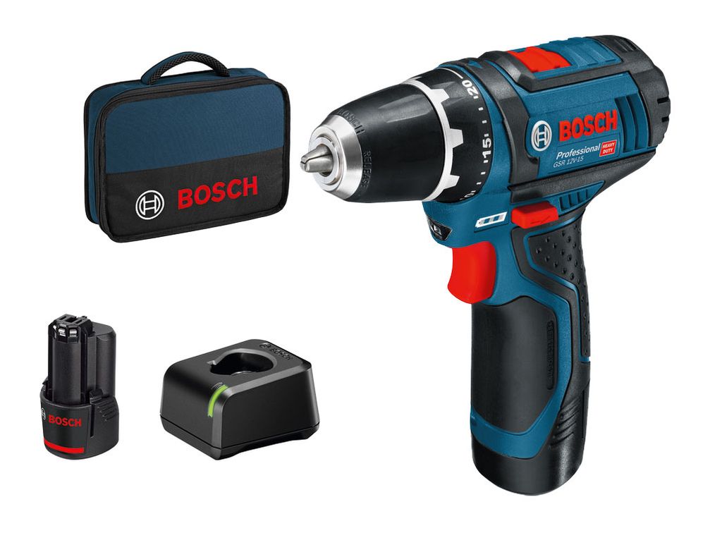 Bosch GSR 12V 15 är en kompakt och stark borrskruvdragare som balanserar kraft och smidighet i 12 V klassen. Upp till 30 Nm och 1300 varv per minut ger effektiv borrning och skruvdragning i trä och metall. Electronic Cell Protection skyddar batteriet och Autolock förenklar bitsbyten. Levereras med förvaringsväska två 2,0 Ah batterier och laddare.