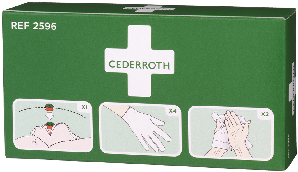 - Innehåll: 4 st Handskar, 2 st Savett Desinfektion, Safety Skin Cleanser (70% Alkohol) och 1 st Andningsduk med backventil