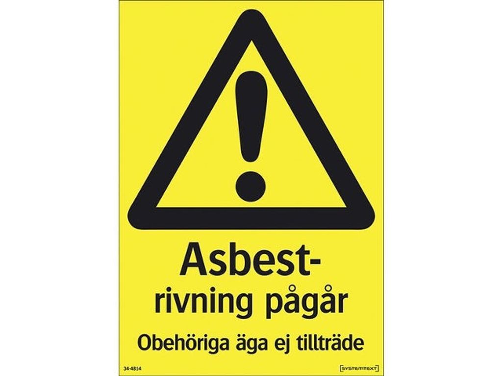Skylt 34-4814 210X297 MM Varningsskylt Asbest rivning pågår