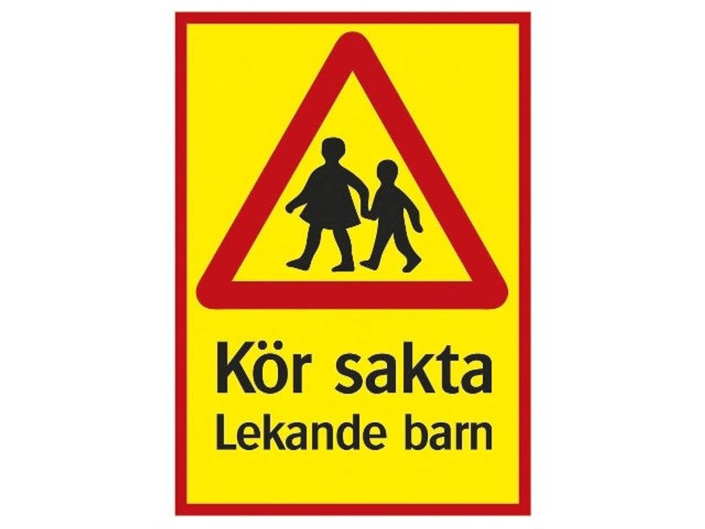Parkeringsskylt Kör sakta Lekande barn