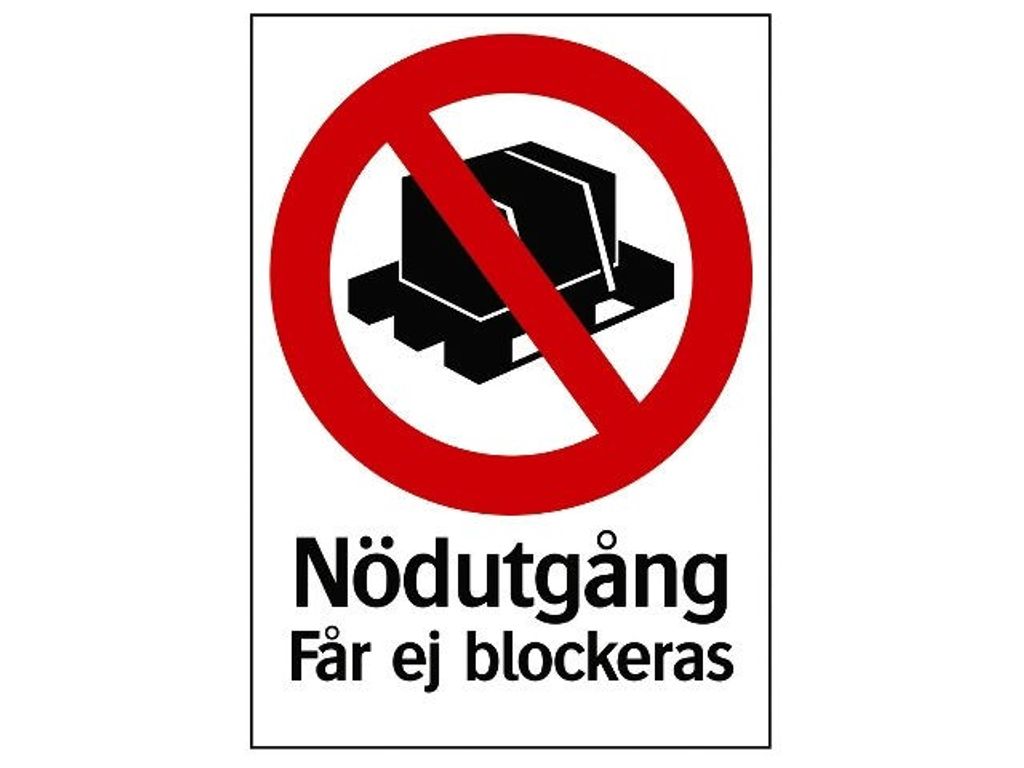 Förbudsskylt Nödutgång får ej blockeras