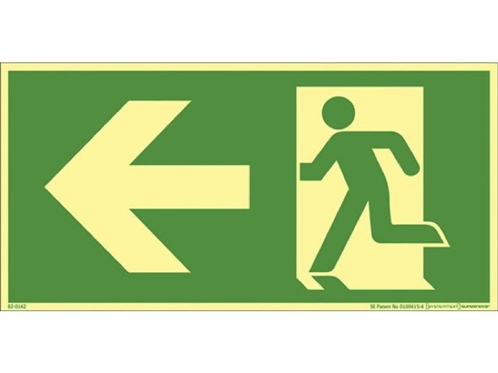 Skylt 82-0142 300X150 MM Utrymningsväg till vänster