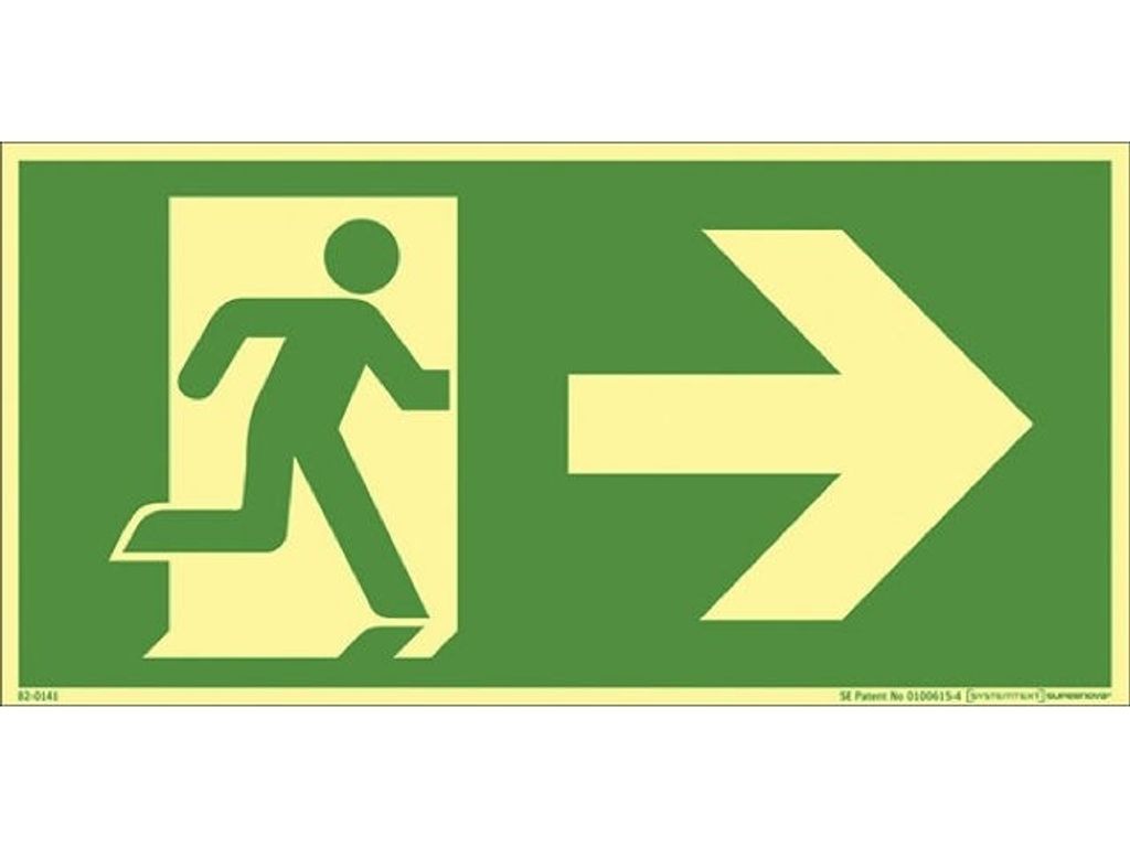 Skylt 82-1141 200X100 MM Utrymningsväg till höger