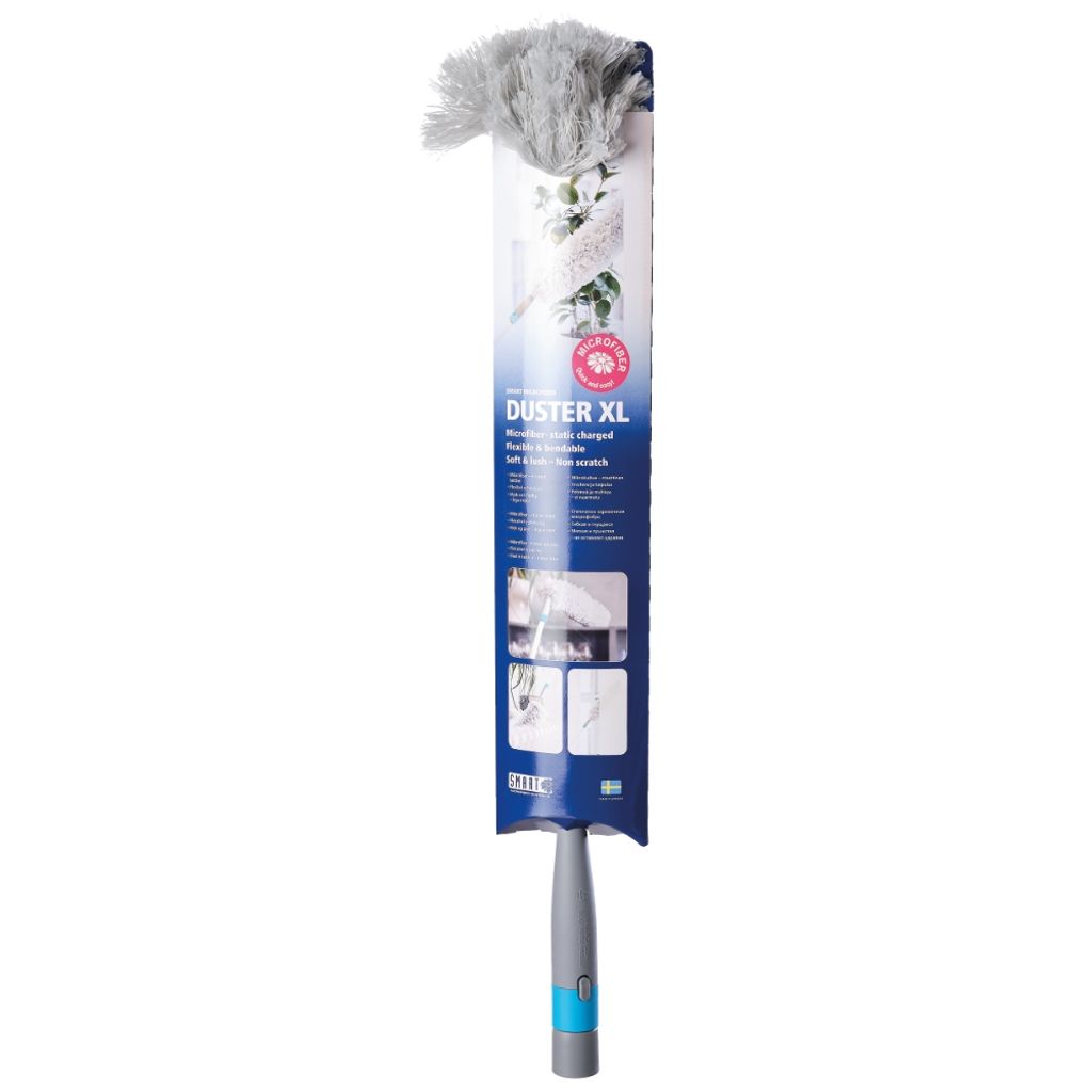 Av mikrofiber, ger statisk effekt. Flexibel och böjbar. Mjuk och fluffig, inga repor. Ergonomisk utformning med vikbart blad gör det enkelt att komma åt på svåra ställen.