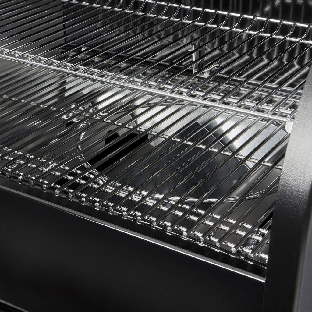 Grillen har ett temperaturintervall från 95-315° som ger stora möjligheter att bryna biff, röka revbensspjäll, baka paj, steka grönsaker och allt därtill. En äkta allt-i-ett grill som bryner lika bra som den röker.