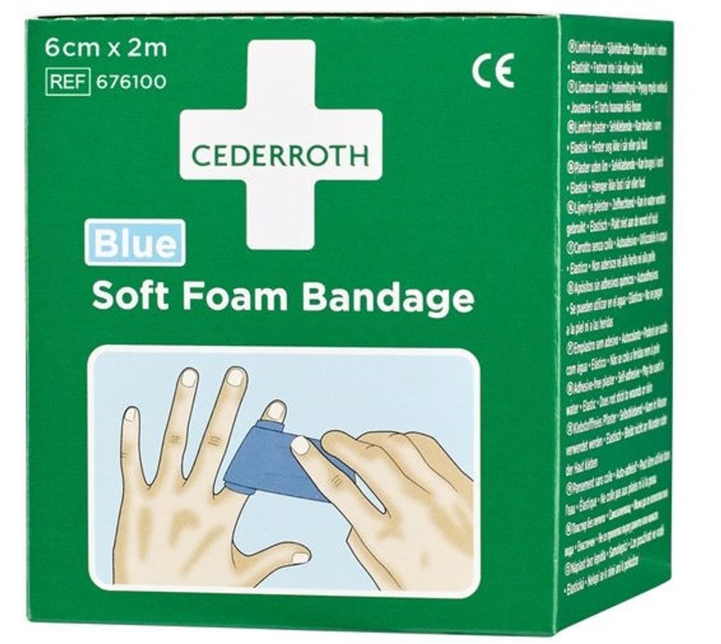 Cederroth Soft Foam Bandage Blue är en nyhet som fungerar både som plåster och som bandage. Förbandet passar på alla typer av små sår oberoende av värme, kyla, vått eller torrt och sitter kvar även i vatten. Cederroth Soft Foam Bandage är självhäftande, utan klister, och klibbar därför inte fast i hud eller hår.