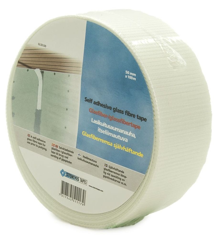 Spackelremsa, Glasfiber, självhäftande 50 mm x 100 m