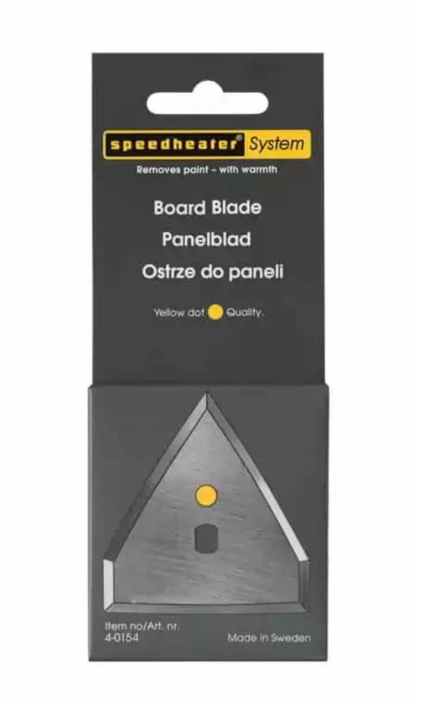 Skrapblad i specialstål. Utformad för att minska kraftbehovet och inte skada träet. Speedheaters smarta skrapa har ett skär som är utformat för att kunna passa till en mängd olika profiler. Skären är tillverkade av ett hårt och slitstarkt specialstål, vilket gör skrapan till en investering som håller i längden.