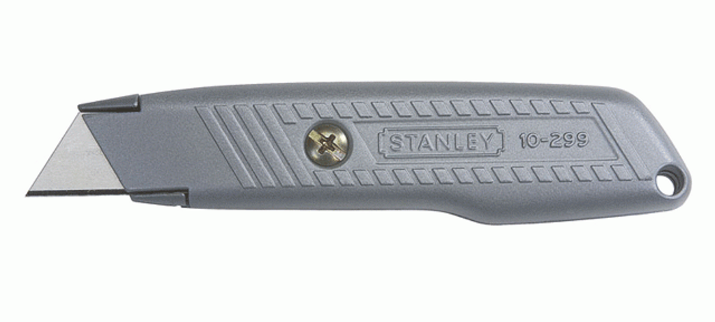Tålig universalkniv med inbyggd bladhållare, patenterat bladlåssystem och lackerad räfflad metallyta för ett bättre och säkrare grepp.