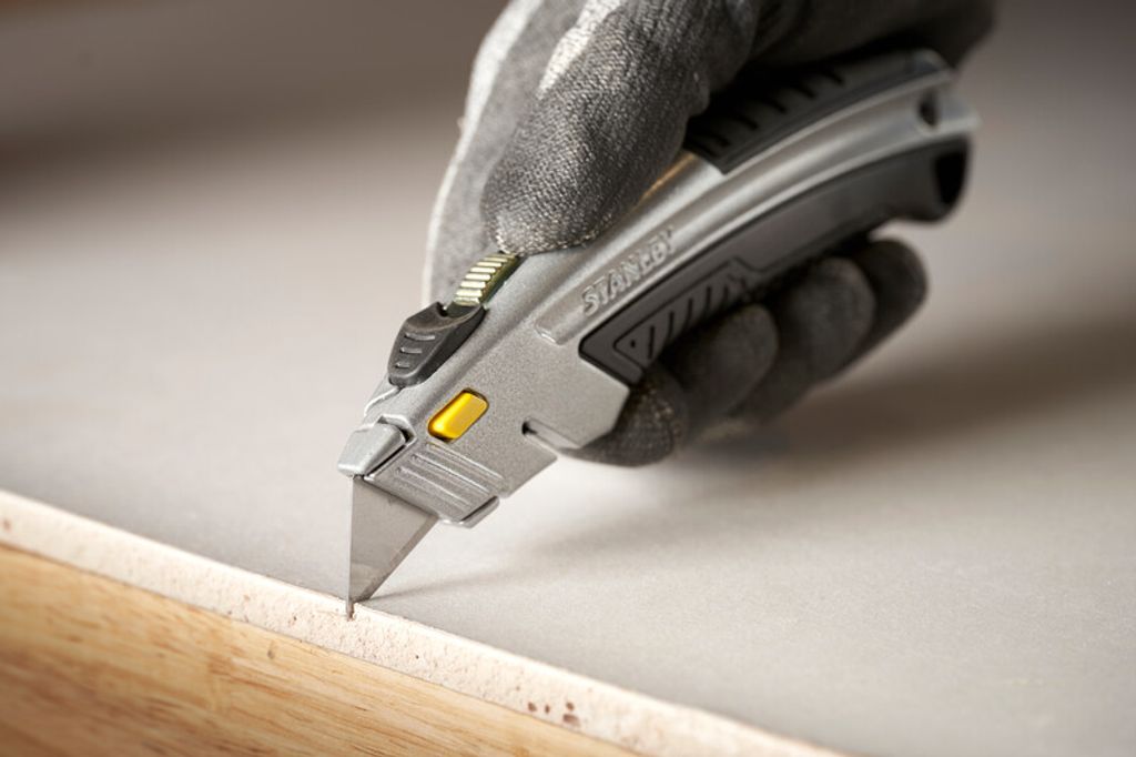- Smal spets för bättre grepp – för exakt tillskärning av gipsskivor