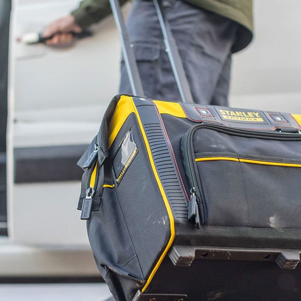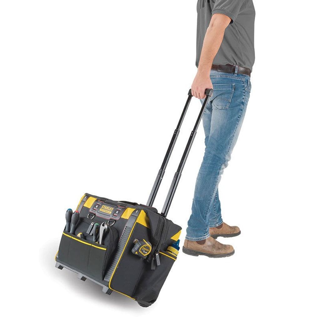 Stanley Fatmax FMST1-80148 är en praktisk förvaringsväska på hjul med draghandtag. Plats för många verktyg både på insida och utsida samt en stor öppning för lättare åtkomst.
