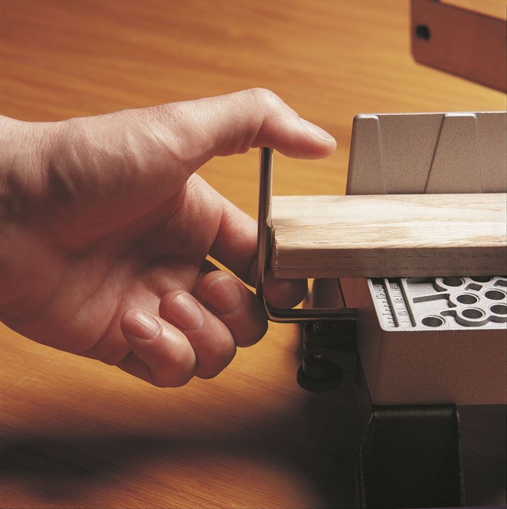Den snabba fastspänningen av arbetsstycket sker med hjälp av rörliga vridlås. Dessutom kan den ställas in till 30, 45, 60 och 90 grader, vilket gör den flexibel för olika projekt. Den har också en justerbar längdmätare för upprepad sågning, vilket gör det enklare att arbeta med större jobb. Elastomerinlägg i handtaget bidrar till ett bekvämt grepp under hela arbetsprocessen.