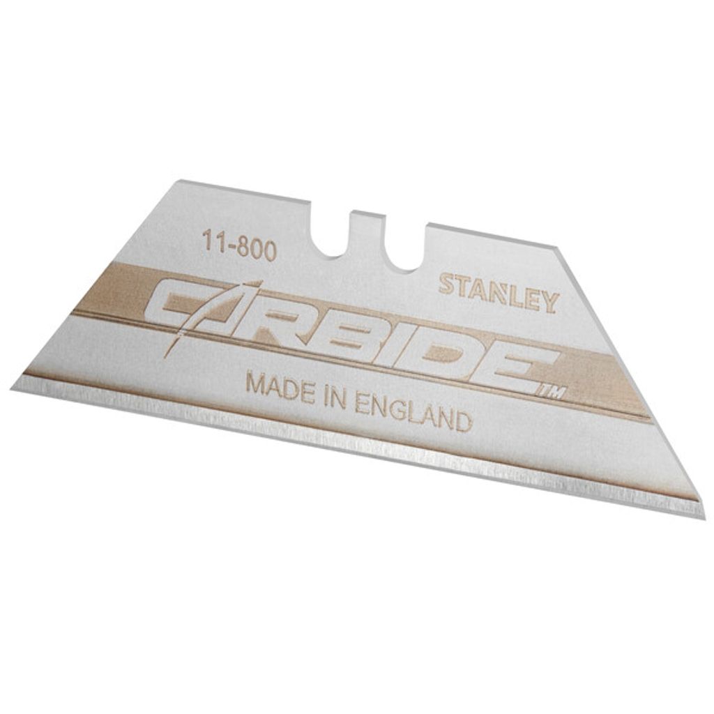 Stanley 0-11-800 Carbide knivblad är extremt hållbara och håller skärpan upp till 5 gånger längre än vanliga knivblad. Med en bladspets av tungstenkarbid (hårdhet 9 på Mohs-skalan) får du maximal livslängd, flexibilitet och minimal risk för skador på känsliga material.