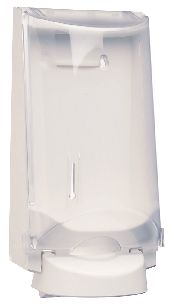 - Vitt bakstycke och doseringstrycke, glasklar kåpa.