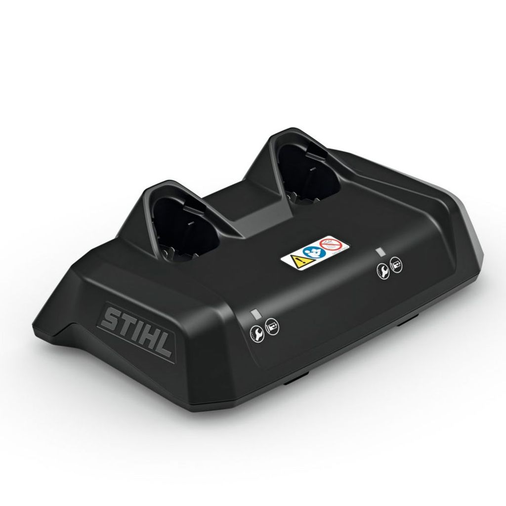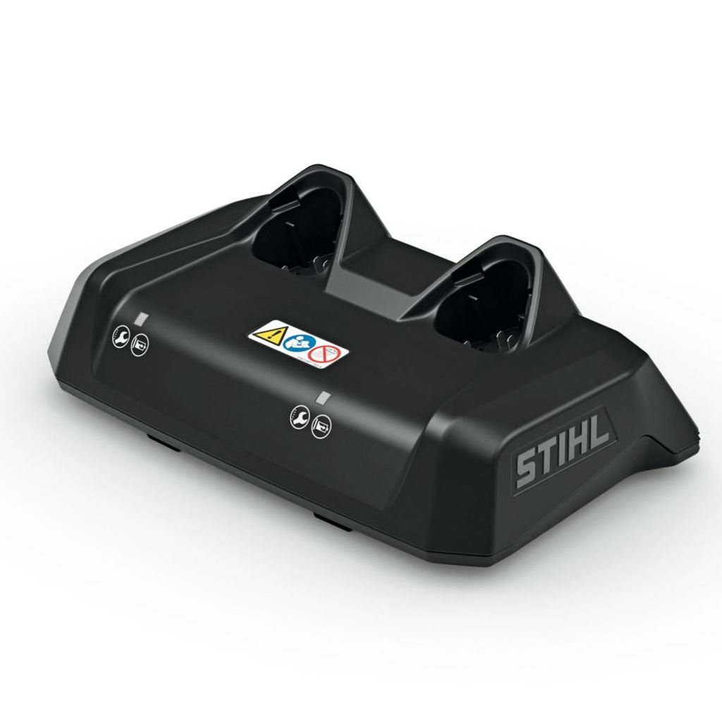 STIHL AL 5-2 är en kraftfull dubbelladdare som laddar två AS 2 batterier samtidigt snabbt och skonsamt. Två LED visar tydligt laddningsnivåerna för varje batteri. Den kompakta och lätta designen gör den enkel att ta med och kabeln hålls prydligt med kardborreband. Kan även väggmonteras för en organiserad och effektiv laddstation i verkstaden