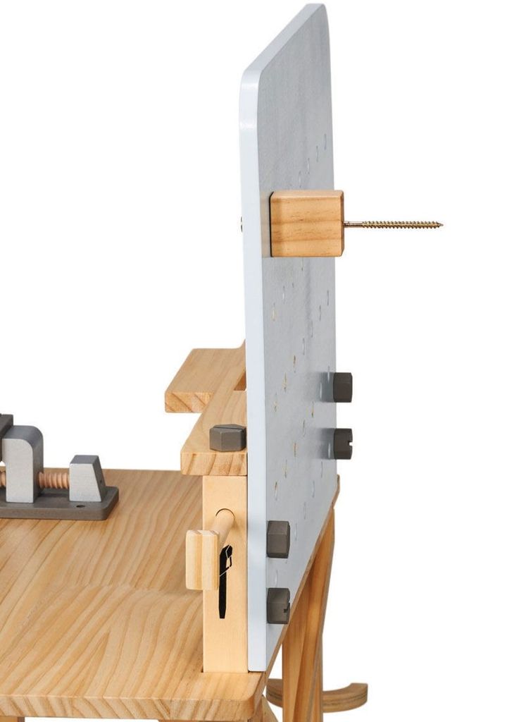 Arbetsbänken har gott om utrymme för små projekt och kommer med träverktyg som ger barnen en realistisk upplevelse av att arbeta som de vuxna. Den robusta konstruktionen av furu, MDF och plywood gör bänken stabil och säker att använda, samtidigt som den är lätt nog för att kunna flyttas runt vid behov. Perfekt för små byggprojekt eller för att reparera leksaker, är denna arbetsbänk ett fantastiskt sätt att stimulera kreativitet och problemlösningsförmåga.