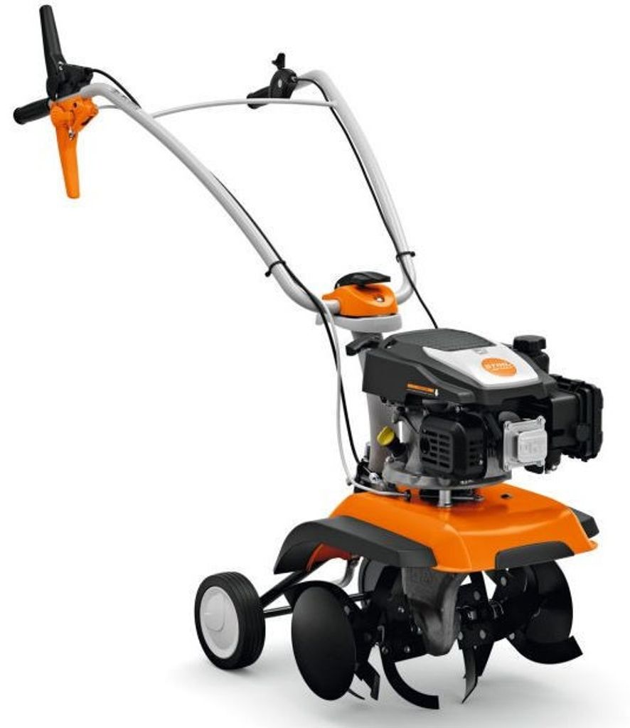 Stihl MH 445 R är en kraftfull och smidig jordfräs som är idealisk för trädgårdsägare och lantbrukare med mindre ytor. Med sin starka bensindrivna OHV-motor och en standardarbetsbredd på 45 cm är den anpassad för effektiv jordbearbetning. Arbetsbredden kan enkelt reduceras till 25 cm för att möjliggöra arbete i rabatter och trånga passager. Backväxeln gör det lätt att hantera maskinen och minimera ansträngningen vid längre arbetspass.