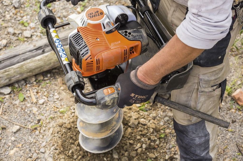 Stihl bensindriven jordborr BT131 - enmansborr med hög säkerhet. Enmansborr med Quickstop borrbroms och 4-MIX motor.