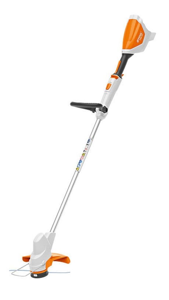 Stihl FSA 57 är en mycket lätt och lätthanterlig batteridriven trimmer för skötsel av gräsmatta och gräskanter på din tomt. Klippdiameter är 280 mm, justerbar på längden och dessutom verktygslös justering av handtaget. Utrustad med en avståndsbygel för klippning runt träd, buskar och andra hinder.