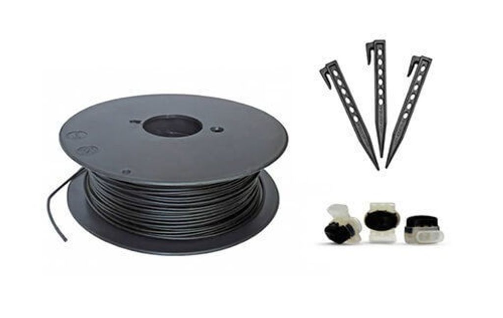 Komplett installationssats med 150 m (rulle) ø 2,3 mm begränsningsslinga, 150 st. kabelfästen, 2 st. anslutningskontakter och 3 st. kabelkopplingar.