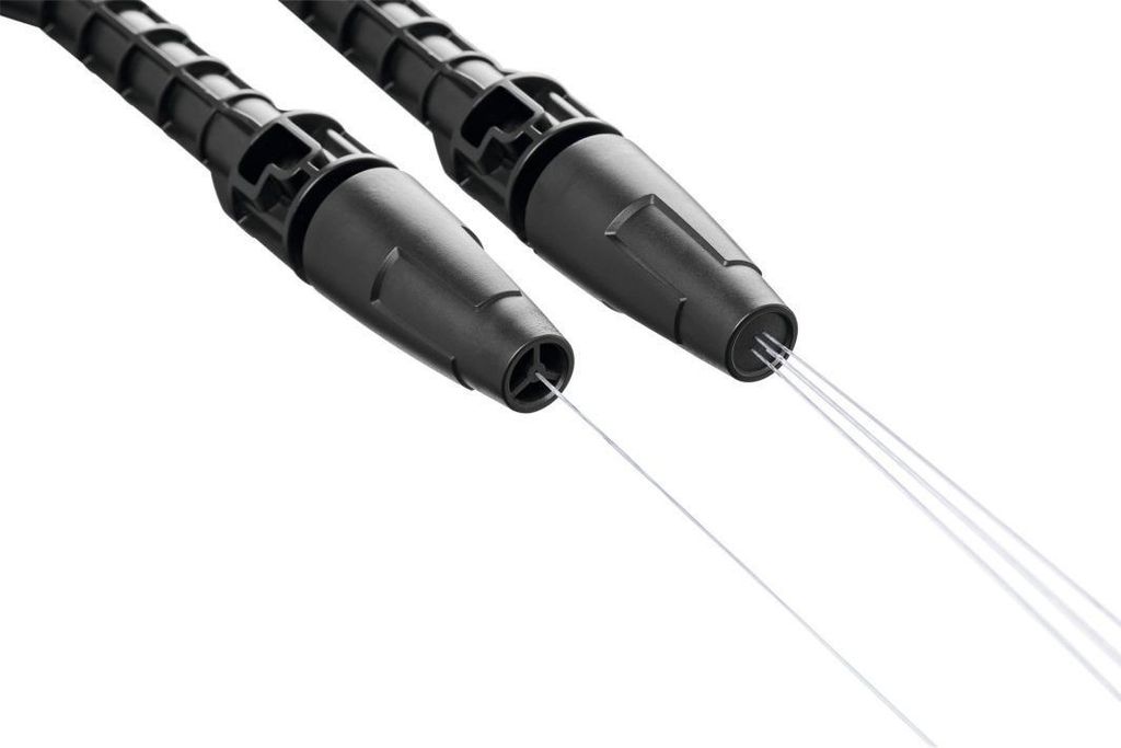 - Levereras med två utbytbara munstycken för olika sprutinställningar