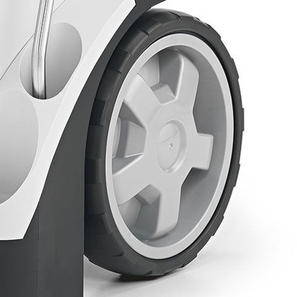 Breda hjul med 250 mm i diameter ger extra stabilitet vid förflyttningar och arbete. En stor fördel på ojämnt och tuffare underlag.