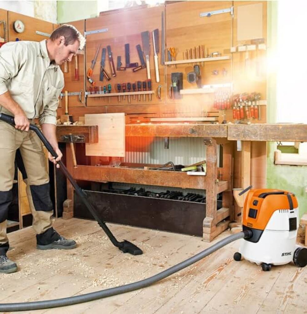 Stihl SE 62 E är idealisk för rengöring i garage, mindre verkstäder och hushåll. Perfekt för damm och spån från elverktyg, grov smuts och vätskor. Blåsfunktionen gör den användbar även på svåråtkomliga platser.