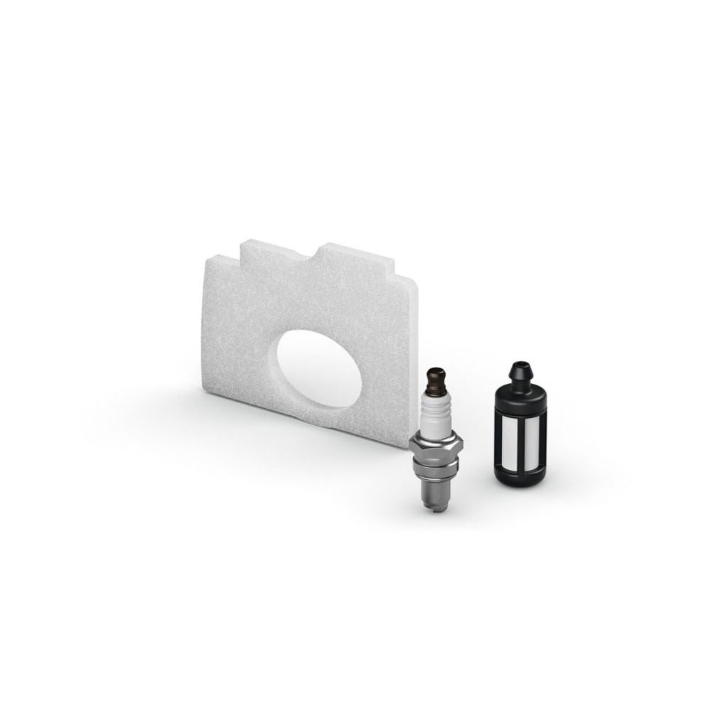 Stihl Servicekit 45 är ett komplett underhållspaket för MS 170 och MS 180 som förlänger motorsågens livslängd. Kitet innehåller fleece luftfilter tändstift och bränslefilter för säker start jämn gång och låg bränsleförbrukning. Delarna byts enkelt med sågens kombinyckel och det medföljande hjälpverktyget gör bränslefilterbytet smidigt även för privat användare.