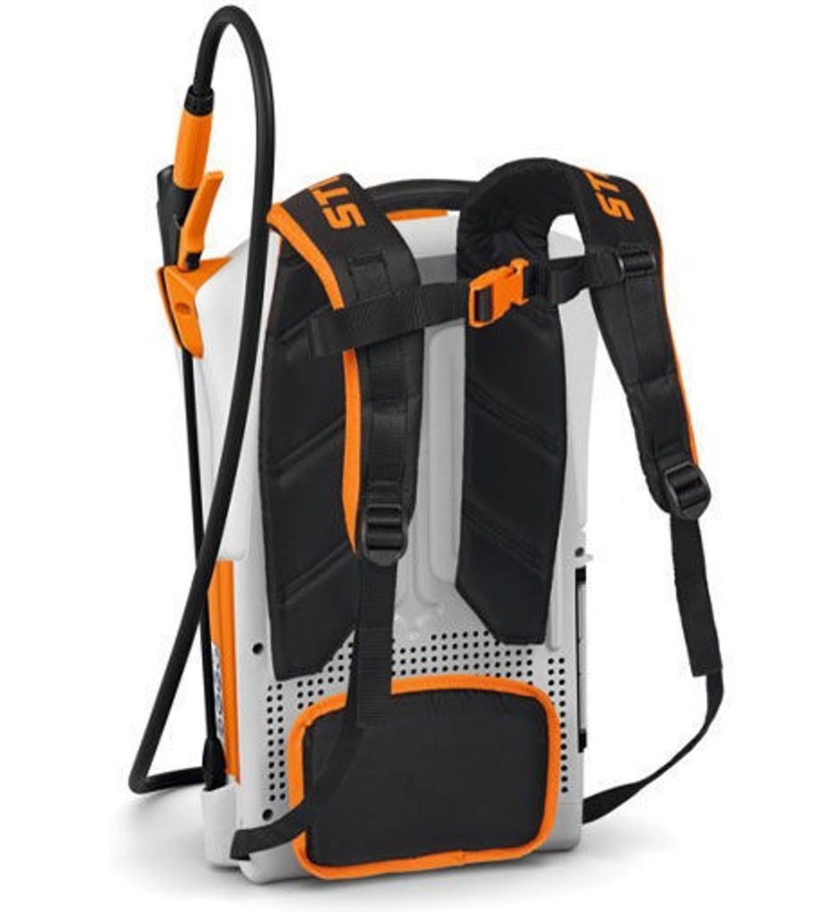 Stihl ryggspruta SGA 85 är en batteridriven enhet designad för effektiv och bekväm spridning av vätskor över stora områden. Den har en generös tankvolym på 17 dm³ och drivs av en 36 V batterikälla, vilket ger långvarig prestanda för olika applikationer. Med en låg ljudnivå och minimala vibrationer är denna ryggspruta både användarvänlig och komfortabel att bära under längre perioder. Vattenflödet är justerbart mellan 1,5 till 3,1 l/min, vilket möjliggör anpassning till specifika behov. Batteridriftstiden sträcker sig upp till 510 minuter med ett AP 100 batteri och kan fördubblas till upp till 1.000 minuter med ett AP 200 batteri, vilket gör ryggsprutan till ett flexibelt verktyg för allt från trädgårdsarbete till kommersiellt bruk.